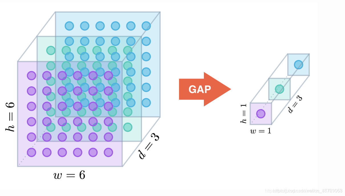 全局平均池化其实就是将最后一层每个通道取均值,最终变成channels * 1 * 1的一维格式,这样的效果和全连接层是一致的