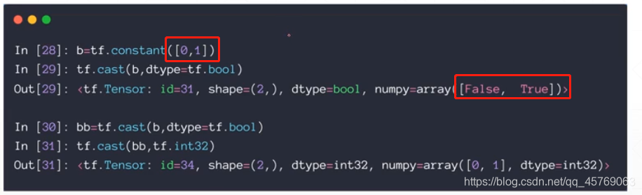 tf.cast(变量名,dtype=需要转换成的数据类型)#例如tf.cast(aa,dtype = float32/double/int32)布尔型和整型的转化