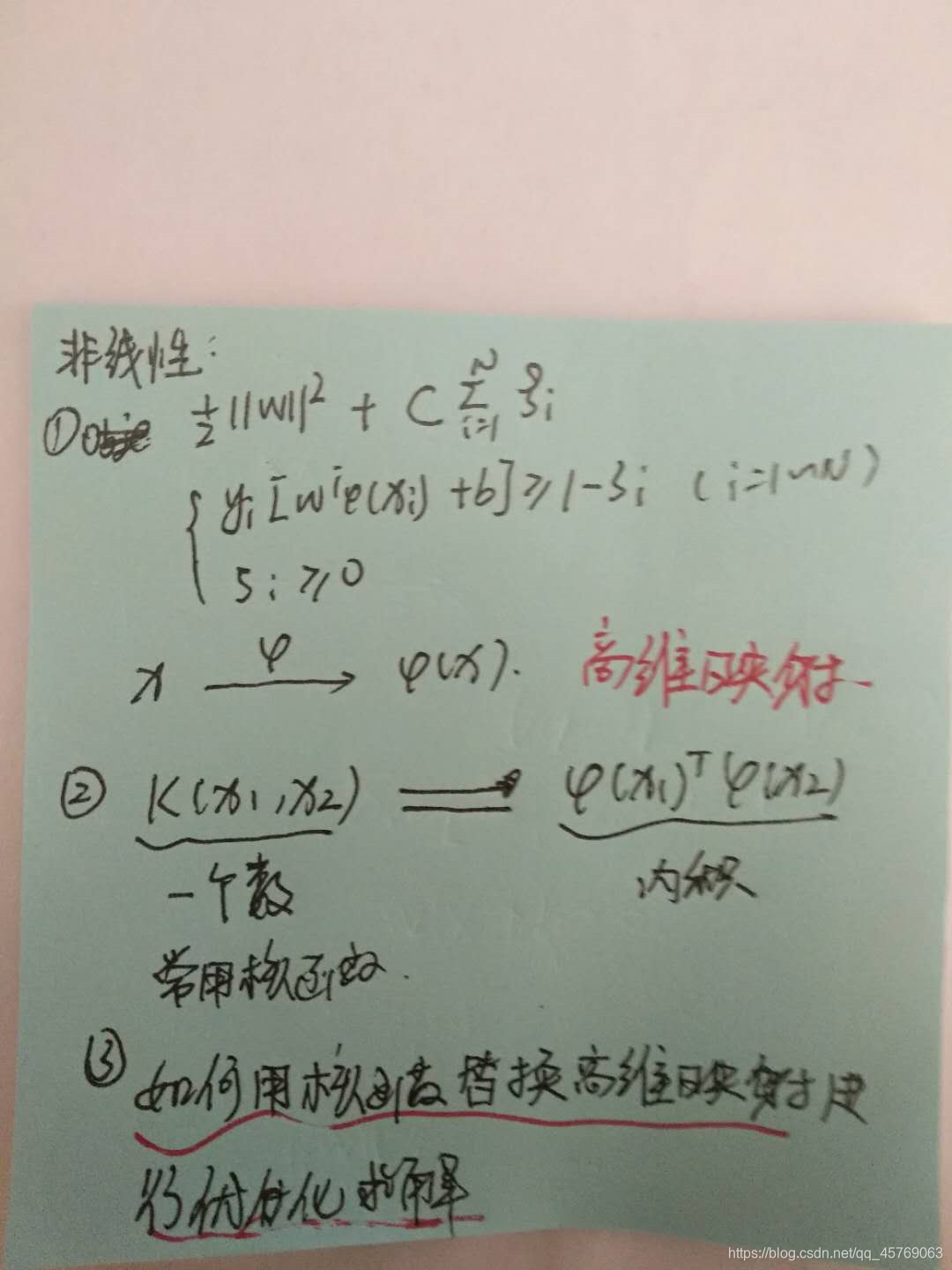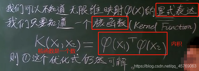 主要思路:我们不需要知道映射的确切关系,只需要知道由低维样本组成的核函数的形式即可,因为核函数可以拆分为高维映射的内积