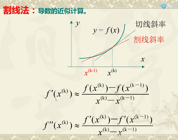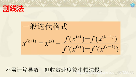 5.5 割线法(不需要计算导数,只是需要坐标值,函数值即可进行迭代,比牛顿法适用)