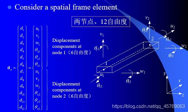 2.空间钢架:两节点12自由度