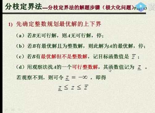 2)重点:分枝定界法(极大化的问题)考试不会分很多次枝,用图解法,一般是二维的