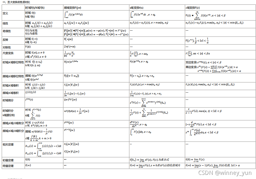 本文主要介绍三大变换(傅里叶变换、拉普拉斯变换及Z变换)的性质对比及其常用信号变换。