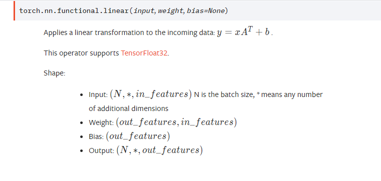 以上的分析照应了torch.nn.functional.linear的表达。