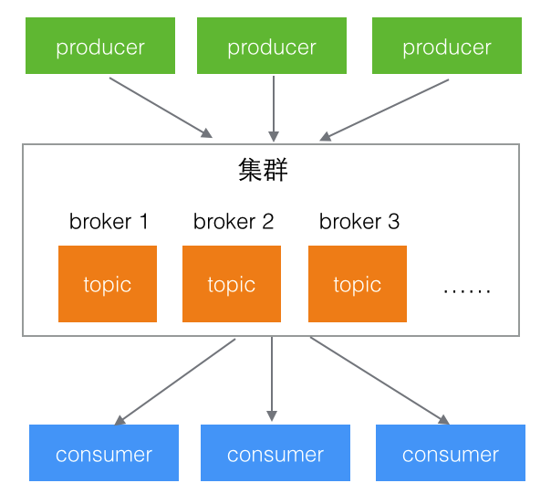 可以在Kafka中创建多个Topic,Producer向Topic中发送消息,Consumer从Topic中获取消息