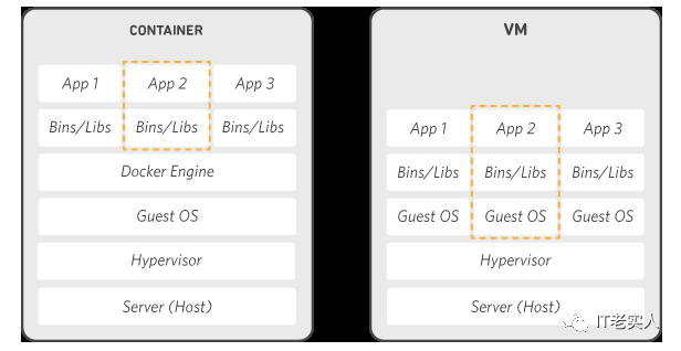 我们在理解 docker 之前,首先我们得先区分清楚两个概念,容器和虚拟机。