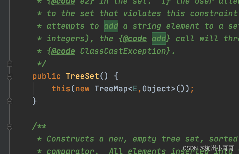 set三个子类的底层其实都是Map的。我们也知道Map是key-value键值对出现的。我们也知道,set添加方法是set.add(“1”)。参数只有一个,不是键值对的,那么底层Map怎么存储的呢? TreeSet的构造方法