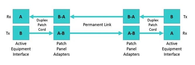 如果您查看下图,您可以很容易地看到,无论通道中有多少配线架适配器或电缆段,Tx(B)都应始终连接到Rx(A)。如果不保持极性,例如将发射器连接到发射器(B到B),数据将根本不流动。很明显,对吧?