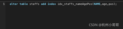 alter table staffs add index idx_staffs_nameAgePos(NAME,age,pos);