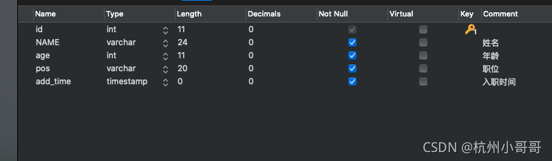 1:表结构