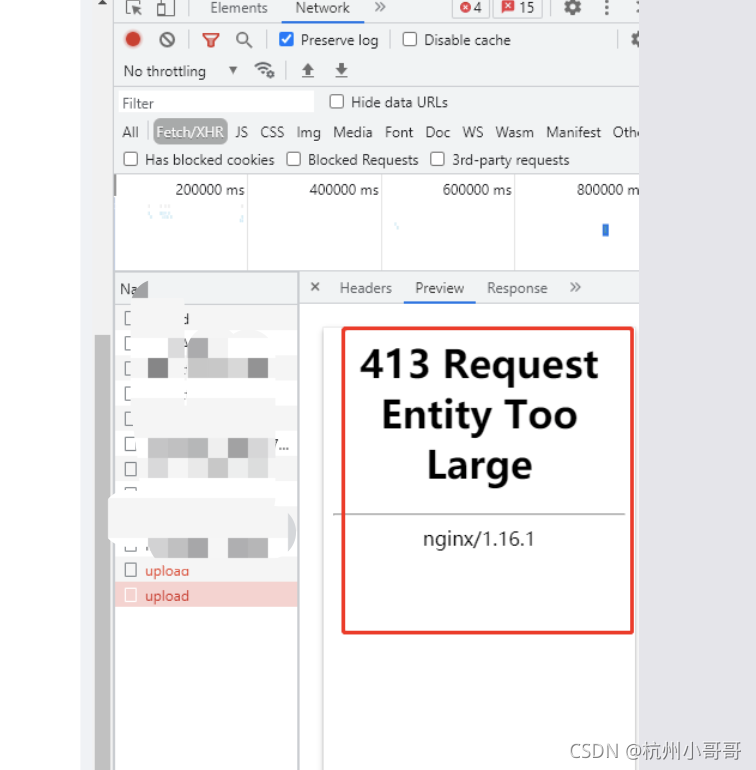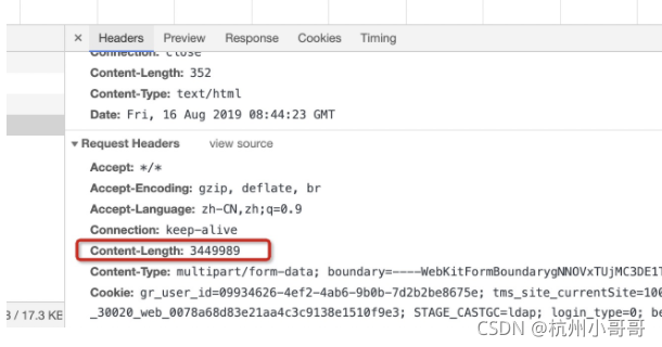 我们可以看到请求的body的大小,在Content-Length后显示,Nginx默认的request body为1M,小于我们上传的大小