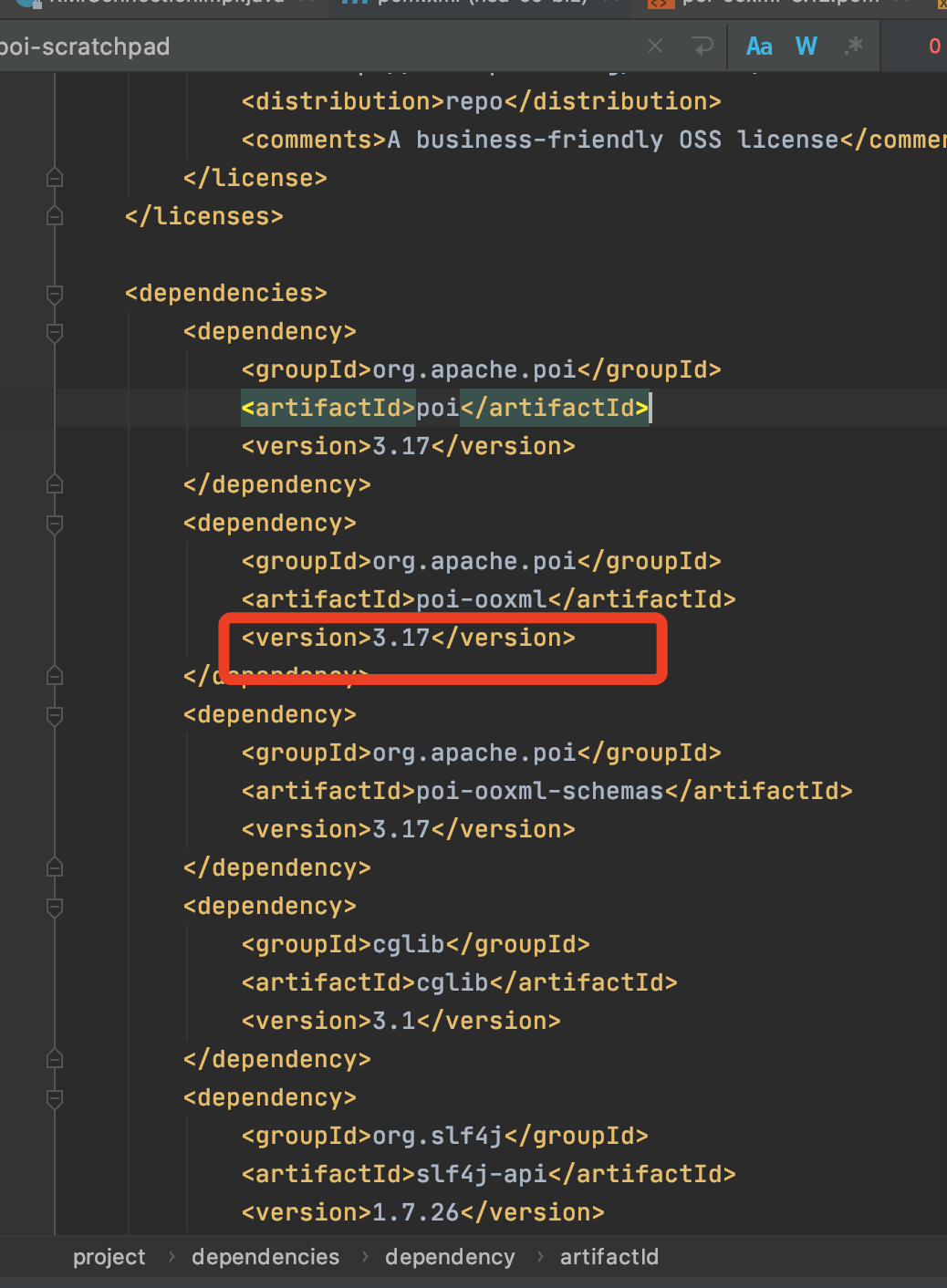把easyexcel依赖点击去可以看到poi-ooxml版本是3.17