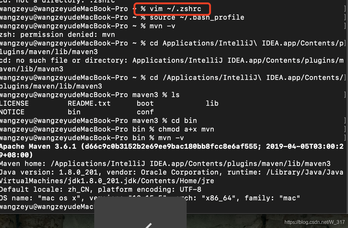 vim ~/.zshrc //将以下两行export加入bash_profile中保存退出 export IDEA_MAVEN=/Applications/IntelliJ\ IDEA.app/Contents/plugins/maven/lib/maven3//注释:maven3 的地址可以显示包内容去查看,以查看的距离路径为准 export PATH=$PATH:$IDEA_MAVEN/bin source ~/.bash_profile //在终端执行,使bash_profile生效