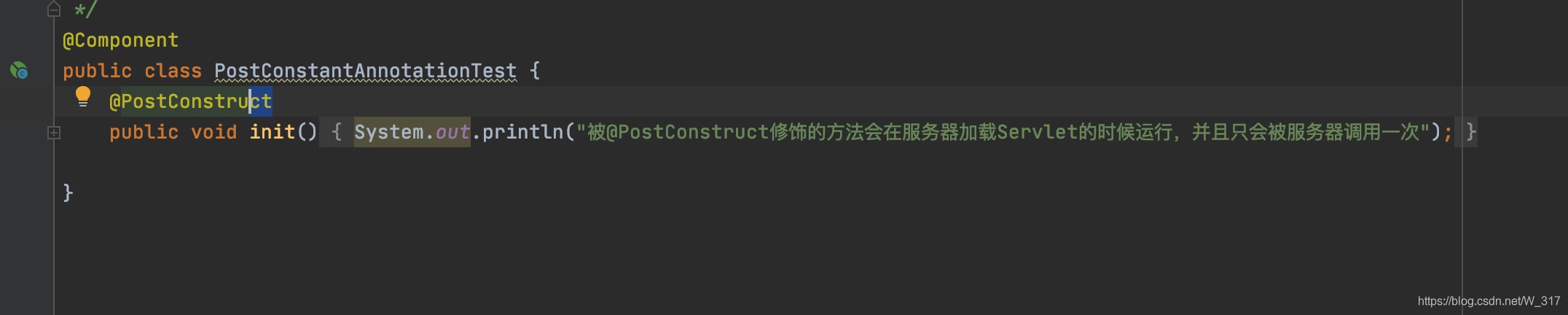 如果想在生成对象时完成某些初始化操作,而偏偏这些初始化操作又依赖于依赖注入,那么久无法在构造函数中实现。为此,可以使用@PostConstruct注解一个方法来完成初始化,@PostConstruct注解的方法将会在依赖注入完成后被自动调用。