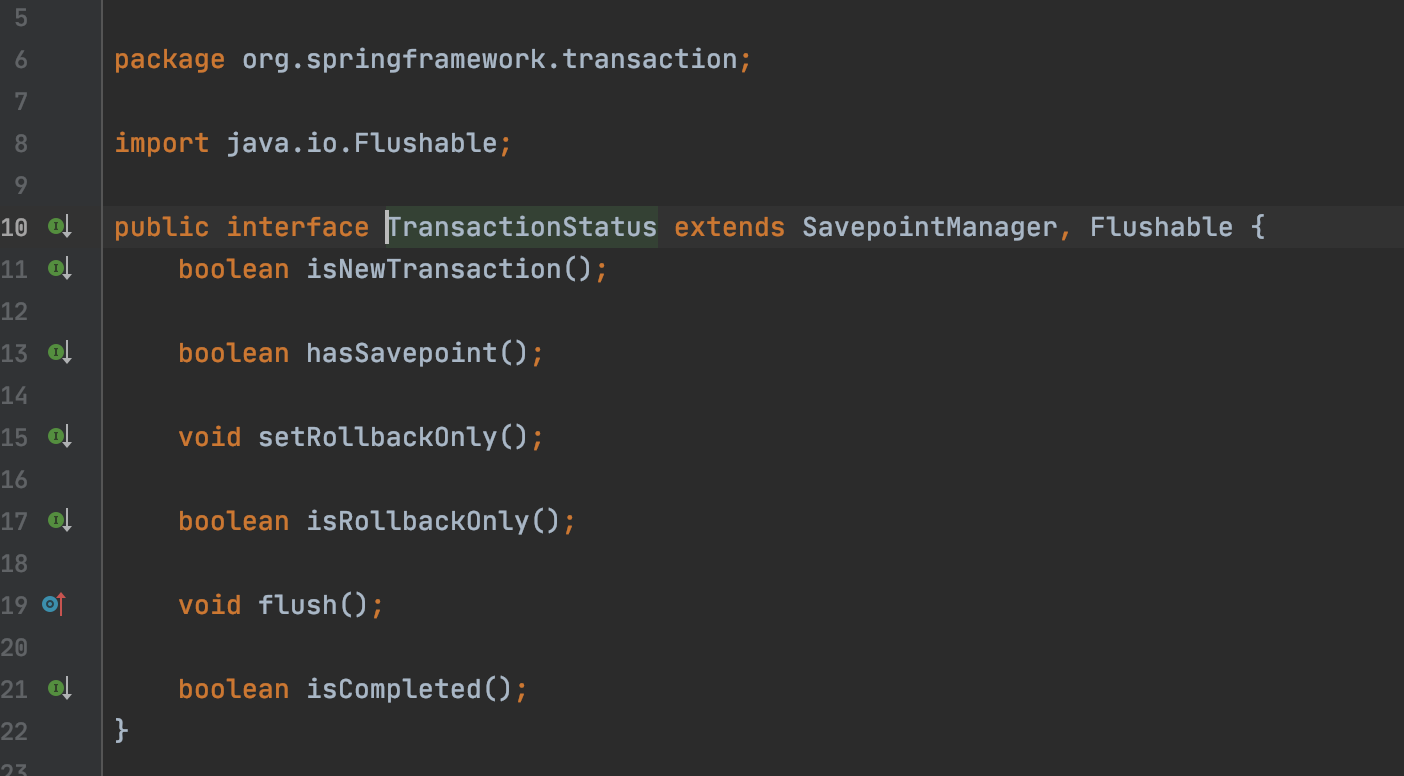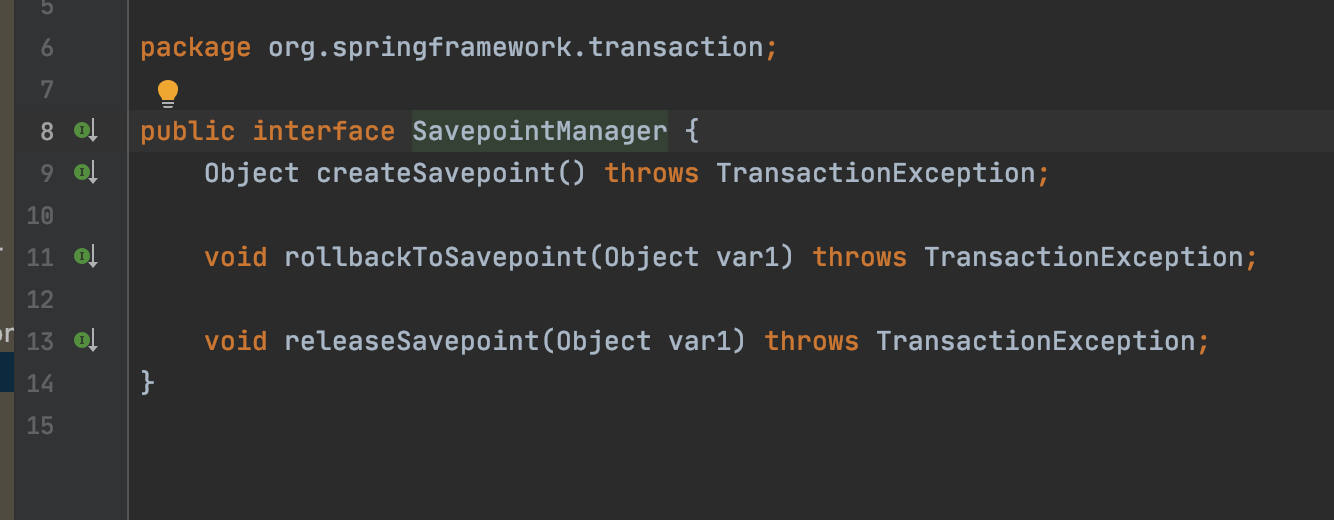 TransactionStatus它继承了SavepointManager接口,SavepointManager是对事务中上述保存点功能的封装,如下: