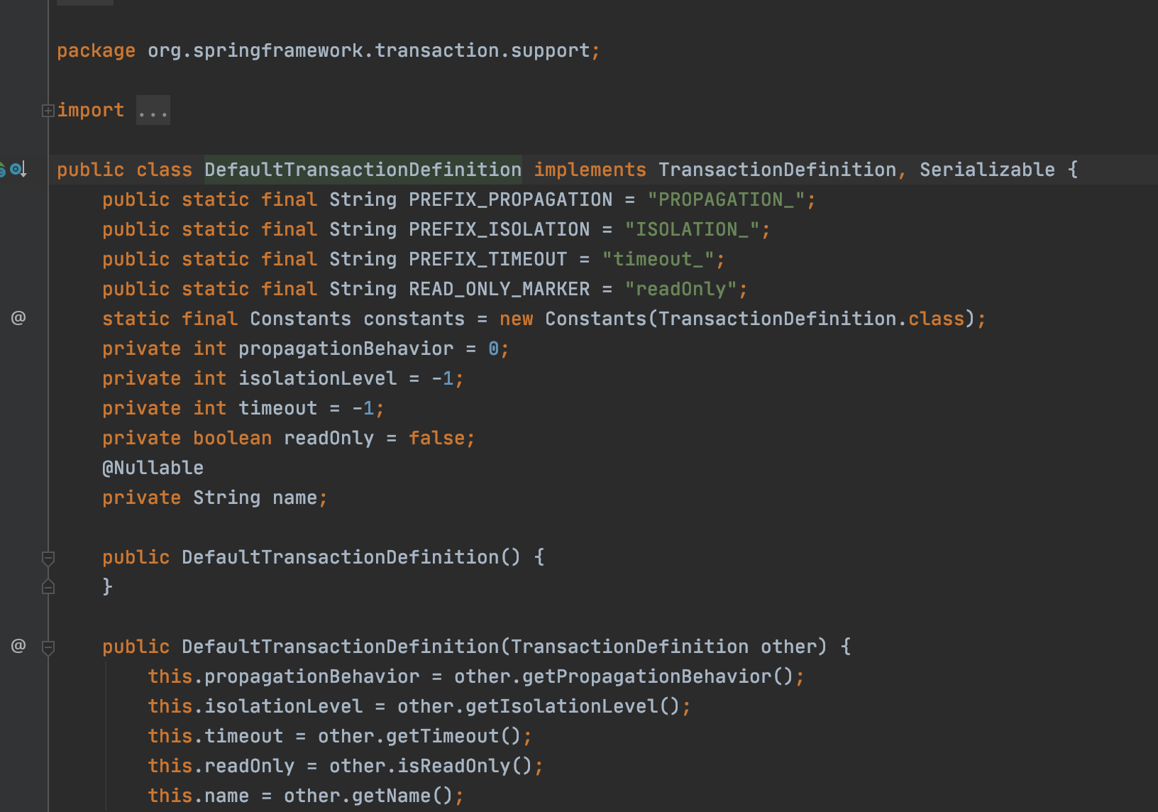该接口的实现DefaultTransactionDefinition,默认的事务定义