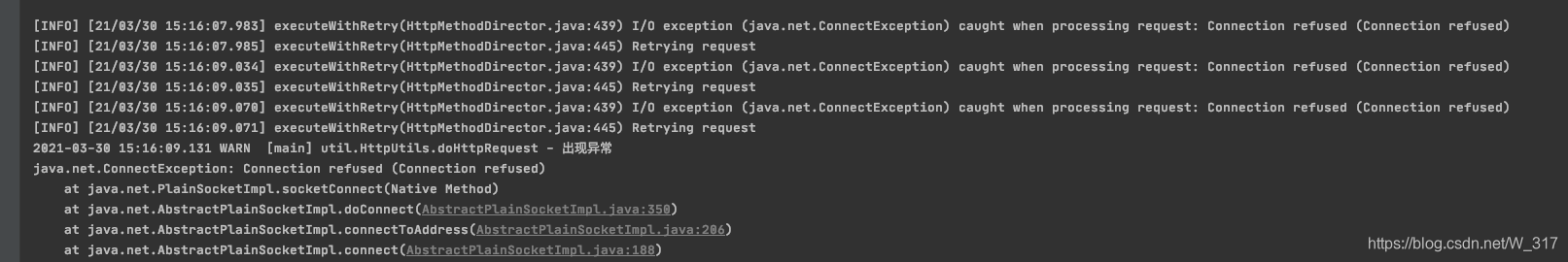 客户端的“ java.net.ConnectException:Connection refused ”异常。