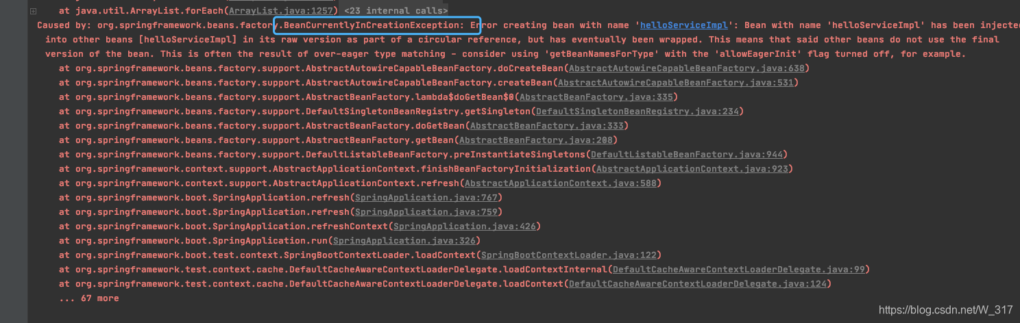 此种做法首先是Spring中一个典型的循环依赖场景:自己依赖自己。本以为能够像解决事务不生效问题一样依旧屡试不爽,但没想到非常的不给面子,启动即报错