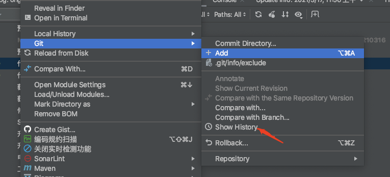 点击Git,再点击Show History