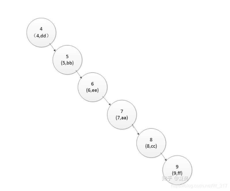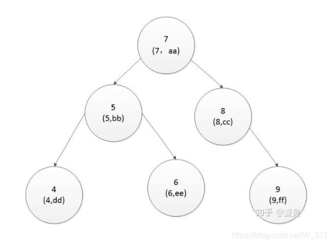然后6再和7左边的节点5比较发现比5大找到5右边的节点6,找到了,取出6对应的记录行的值ee.