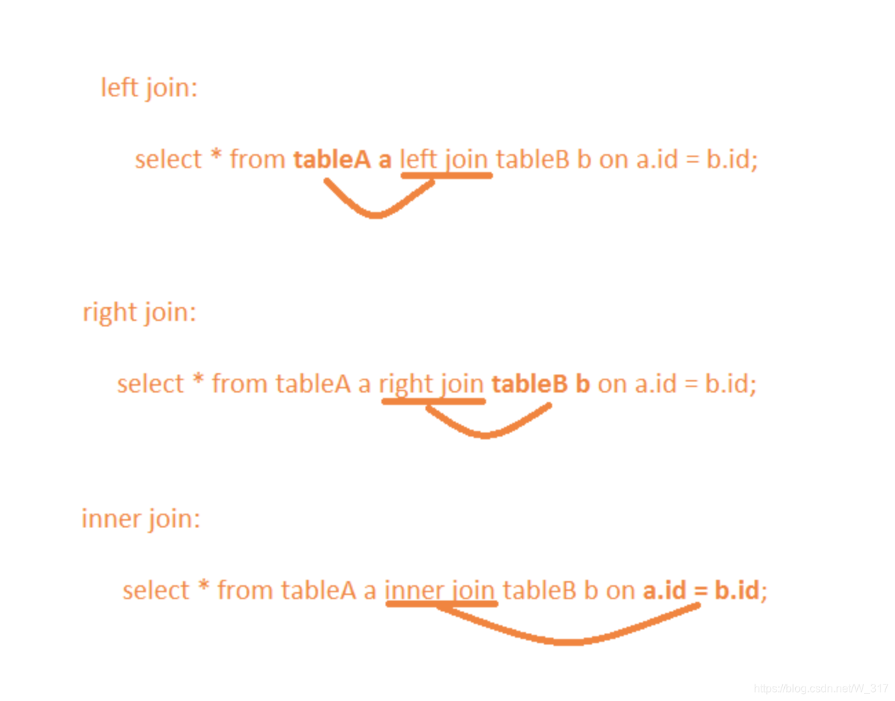 仔细观察一下,就会发现,和left join的结果刚好相反,这次是以右表(B)为基础的,A表不足的地方用NULL填充.