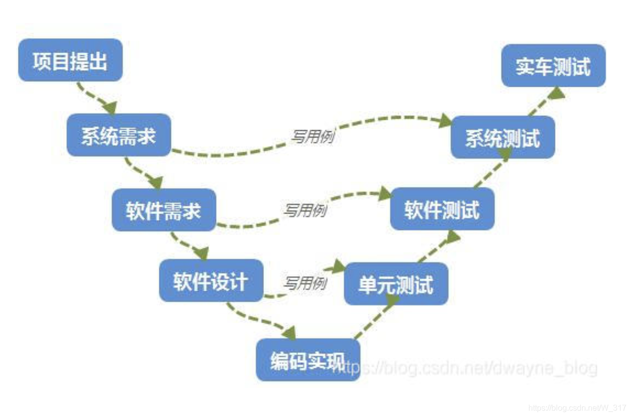 解释一下为何用"V"模型来表示,该模型开发流程仍是:系统需求—软件需求—软件设计—软件编码—单元测试—软件测试—系统测试—实车测试等几个步骤。