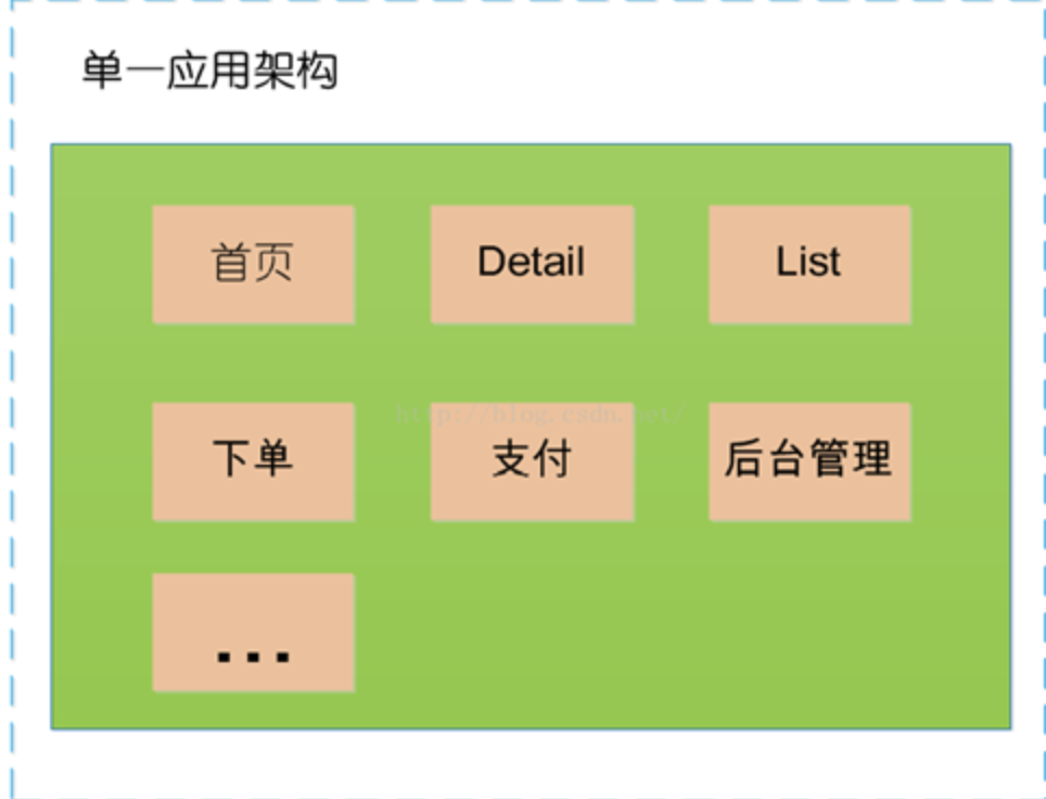 单一应用框架(ORM) 当网站流量很小时,只需一个应用,将所有功能如下单支付等都部署在一起,以减少部署节点和成本。 缺点:单一的系统架构,使得在开发过程中,占用的资源越来越多,而且随着流量的增加越来越难以维护