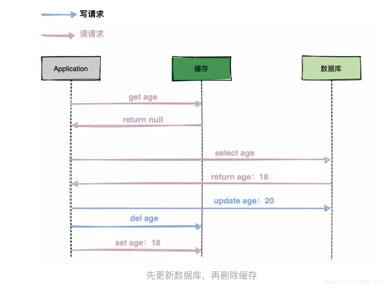 (2)写请求更新数据库,删除缓存;