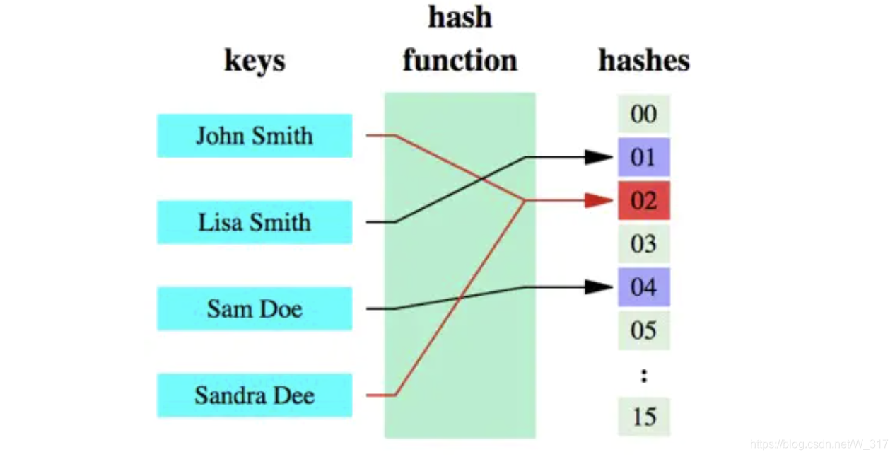 哈希函数的概念是:将任意大小的数据转换成特定大小的数据的函数,转换后的数据称为哈希值或哈希编码。下面是一幅示意图