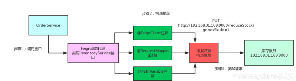 Feign的动态代理会根据你在接口上的@RequestMapping等注解,来动态构造出你要请求的服务的地址
