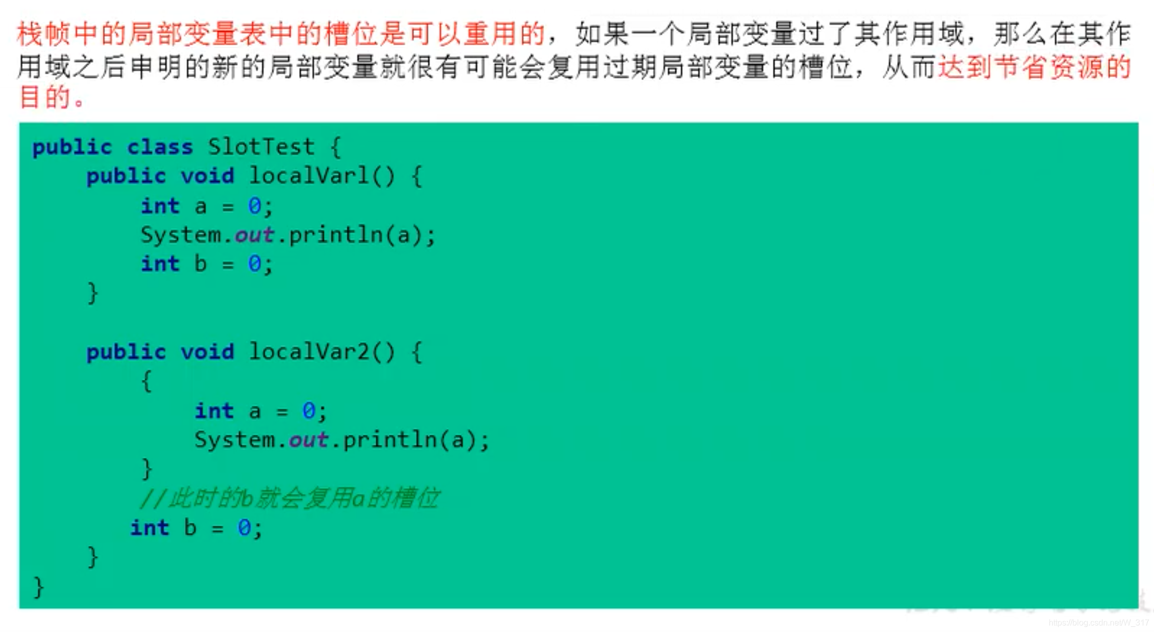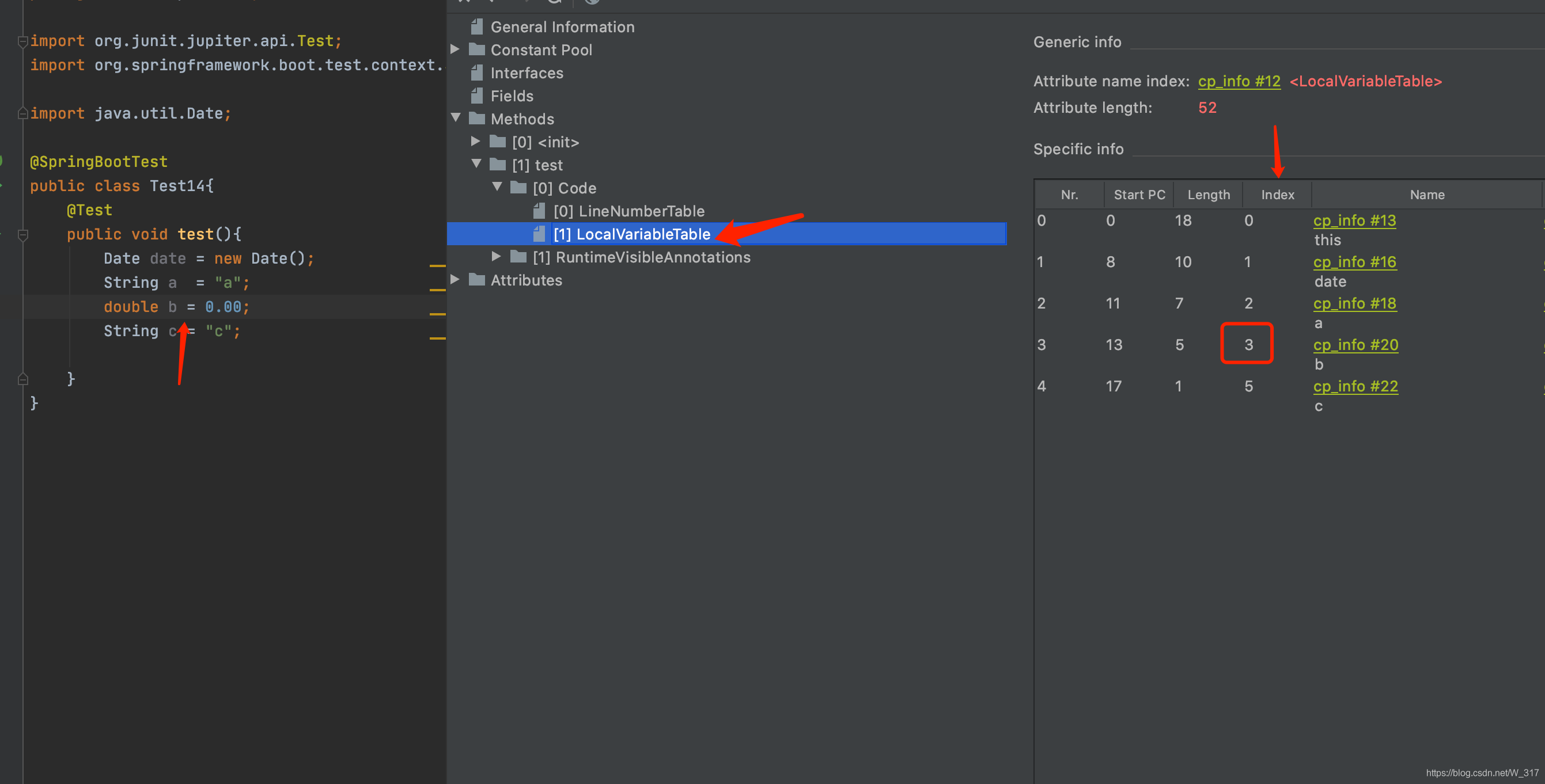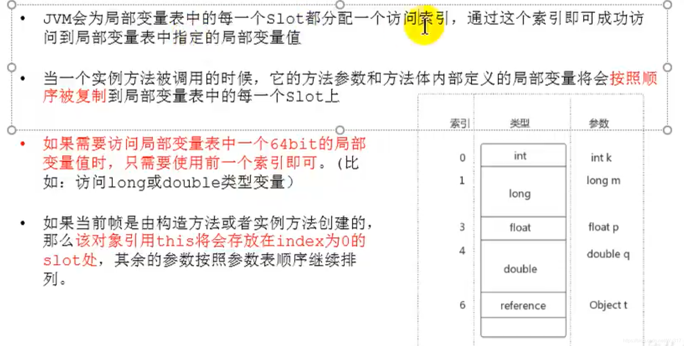 看下图代码例子,double类型的b,占用两个slot,所以index为3和4