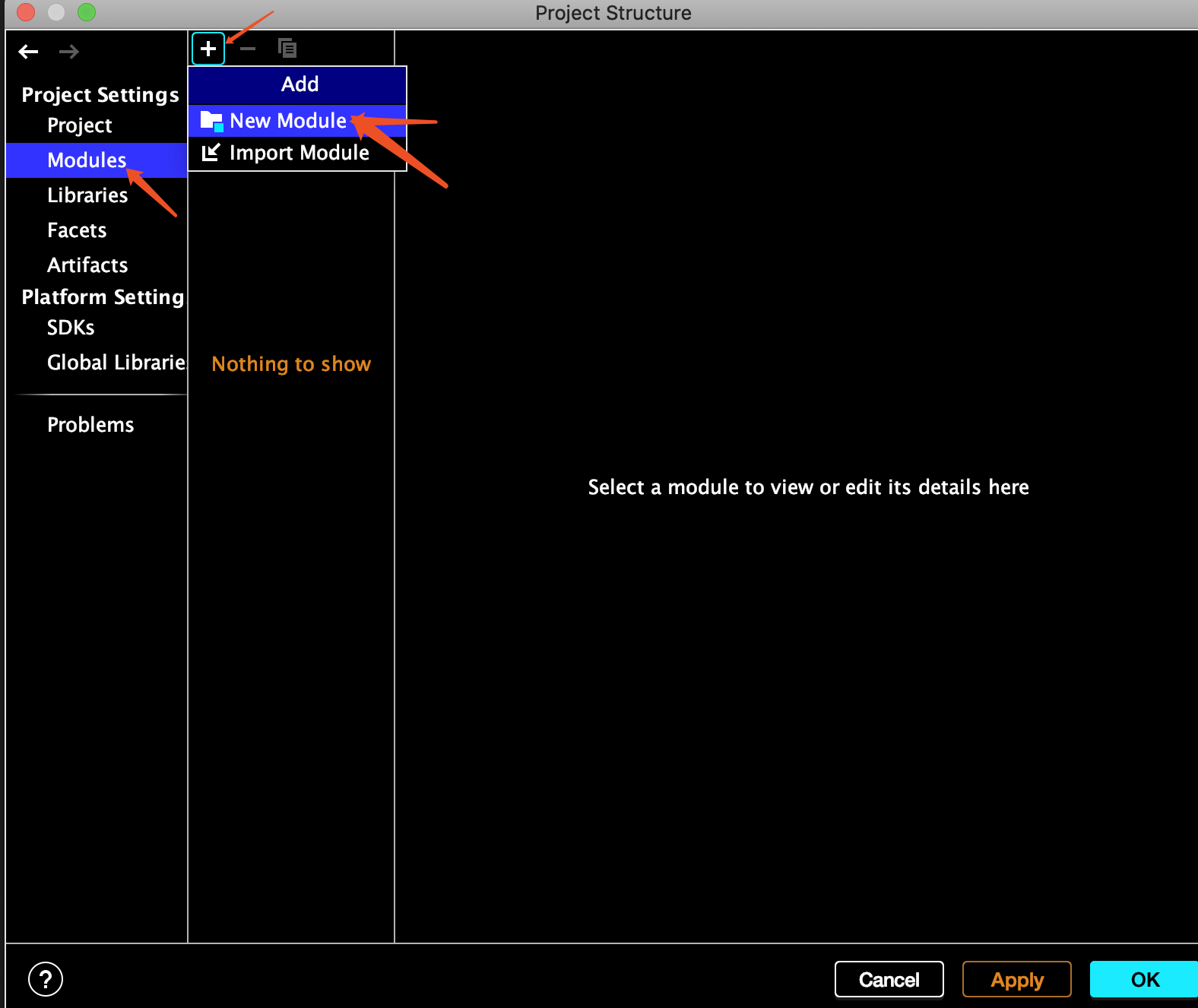 如果有自动弹出添加模块的框的话,直接使用就好,如果没有弹出。