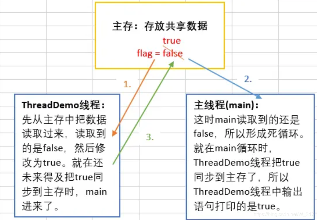 - 内存可见性问题:当多个线程操作共享数据时,彼此不可见。