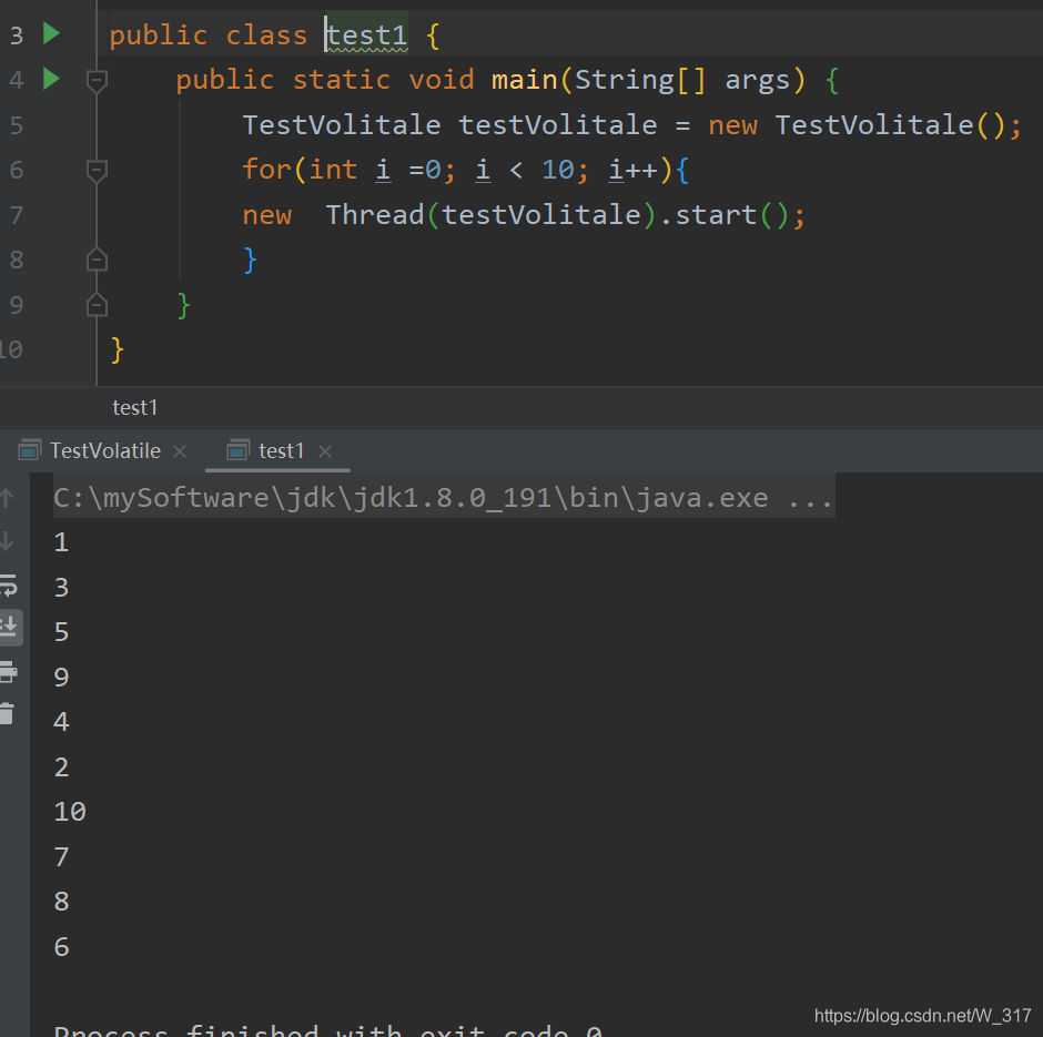 这段代码就是在run方法里面让i++,然后启动十个线程去访问。看看结果: