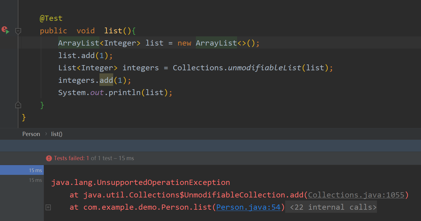 例子:使用了Collections.unmodifiableList() 保证集合不可以修改