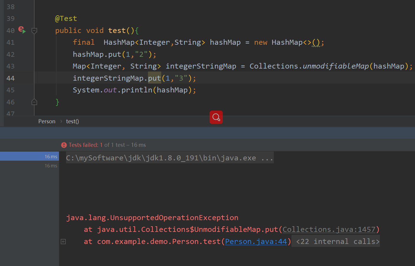 我们可以采用Collections包下的unmodifiableMap方法,通过这个方法返回的map,是不可以修改的。他会报 java.lang.UnsupportedOperationException错。