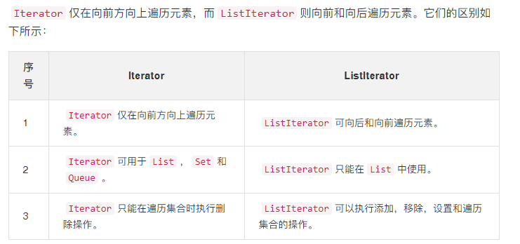 ListIterator中具备着对被遍历的元素进行增删改查的方法,可以对元素进行逆向遍历。