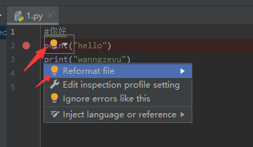 点击小灯泡下的第一行,可以调整注释格式
