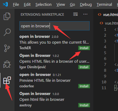 2.输入open in browser,选择第一个