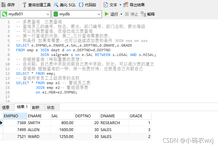 -- 和条件 如果有需要,也可以继续添加表和条件 JOIN xxx on xxx