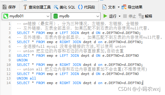 -- 全连接full mysql 没有全链接的方法,可以使用 union