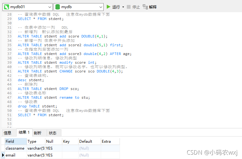 -- 在表中添加一列 DDL