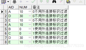 SELECT t1.aid,NVL(t2.num,0),'1通过JOIN条件过滤'