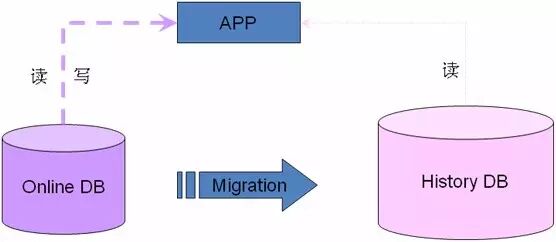 如果这时候历史数据还在online库里面或者online表里面,那么就会影响online的性能,所以对于这种,可以把数据迁移到新的历史数据库上,这个历史数据库可以是mysql也可以是nosql,也可以是数据仓库甚至hbase大数据等。
