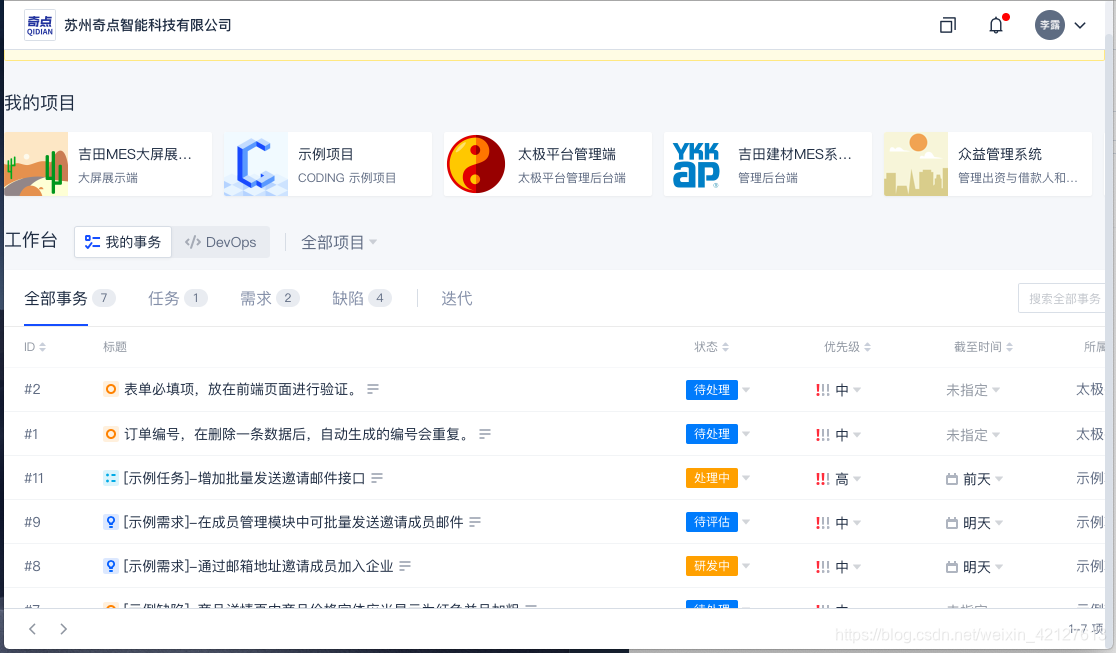 - 同时,任务列表也没有把所属项目列出来,让人一下看不出来是哪个项目的任务和缺陷。