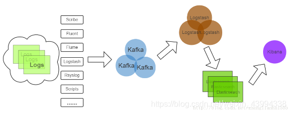 日志处理是指将消息队列用在日志处理中,比如Kafka的应用,解决大量日志传输的问题。架构简化如下: