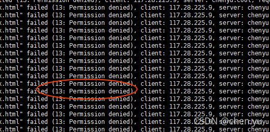 关键字:failed:(13: Permission denied),很明显这里是因为权限不够。