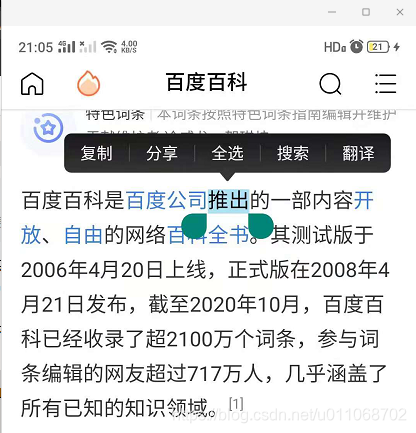 浏览器app封装了Webview,然后实现实现长按Webview页面文字自定义复制、全选、分享、搜索、翻译功能(支持多语言),都在自己的浏览器app里面进行搜索和翻译,不跳到系统浏览器里面去