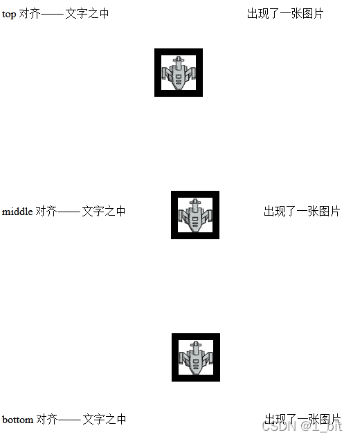 </p><p>bottom 对齐——文字之中<img align="bottom" alt="飞机" title="别看了这是一张图片" hspace="60" vspace="60" border="10" width="50" height="50" src="./img/1.png">出现了一张图片