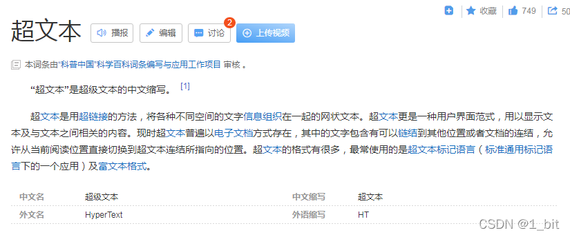 🐶1_bit:是这样的。而超文本就是使用了超链接,将不同地方的资源链接在一起的文本。例如咱们打开一个网站的页面,例如百度搜索引擎,咱们搜索一些内容打开后将会跳转到其他页面,并且包括一些图片、视频、音频都是多个站点的资源内容,这个就是超文本。(参考百度百科)